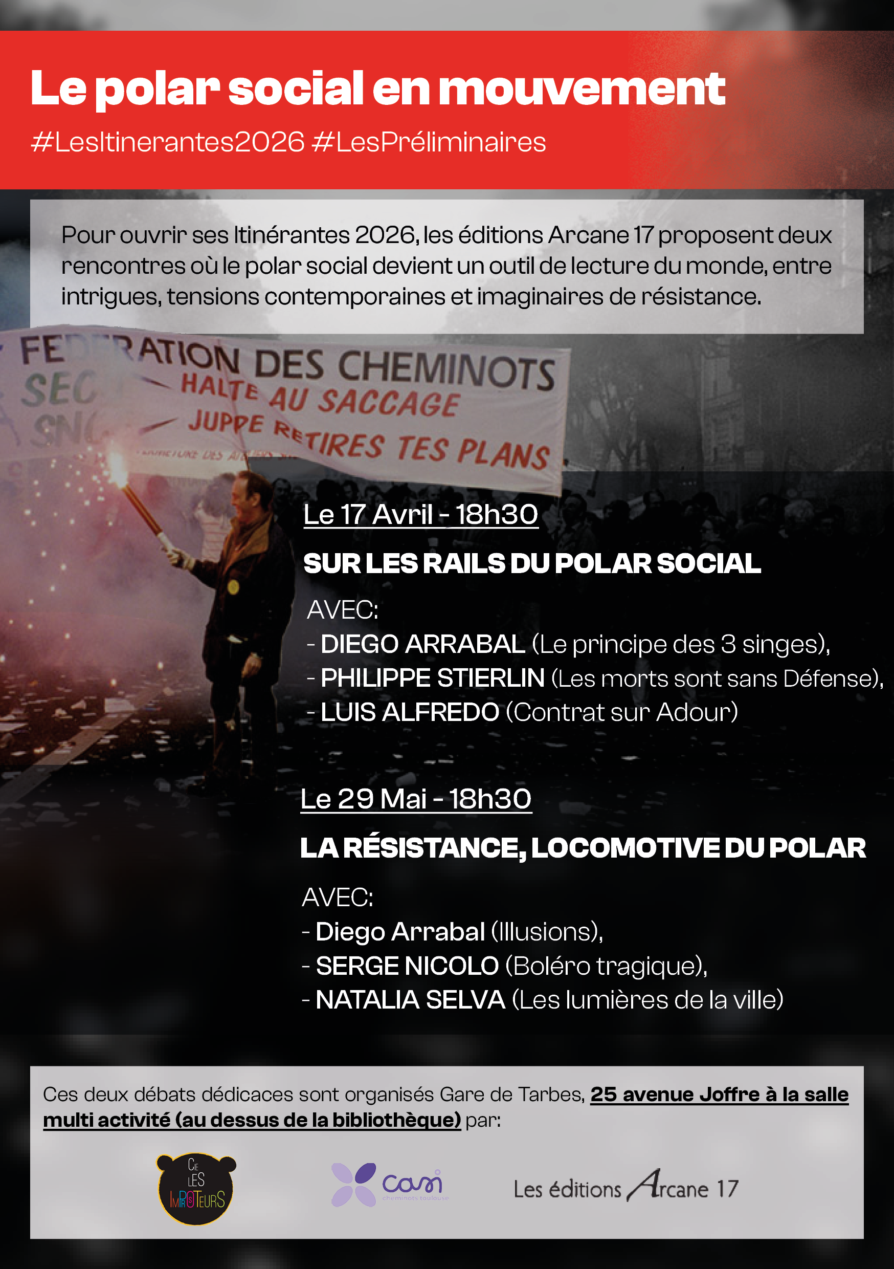 Pour ouvrir ses Itinérantes 2026, les éditions Arcane 17 proposent deux rencontres où le polar social devient un outil de lecture du monde, entre intrigues, tensions contemporaines et imaginaires de résistance.